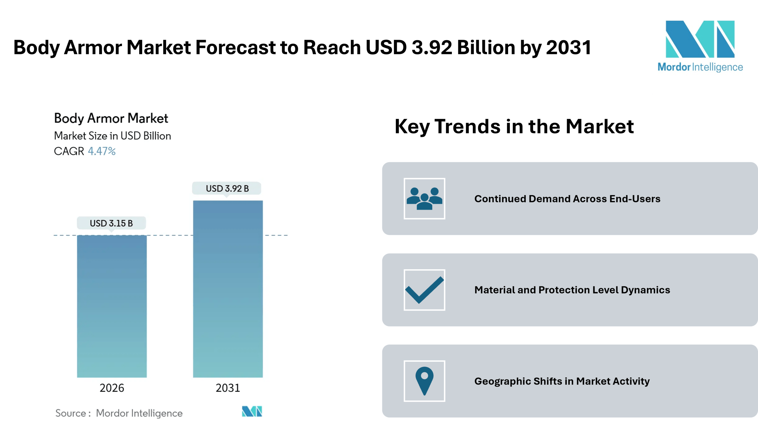 The body armor market size stands at USD 3.15 billion in 2026 and is projected to reach USD 3.92 billion by 2031, representing a 4.47% CAGR, according to recent industry analysis by Mordor Intelligence. This reflects continued interest across defense forces, law enforcement agencies, and civilian segments for protective equipment that balances weight, protection, and comfort. Rising personal and institutional safety needs, along with ongoing military modernization efforts in several regions, contribute to sustained Body Armor Market growth through the forecast period.