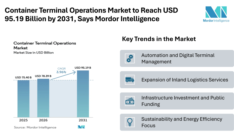 Home Press ReleasesContainer Terminal Operations Market to Reach USD 95.19 Billion by 2031, Says Mordor Intelligence