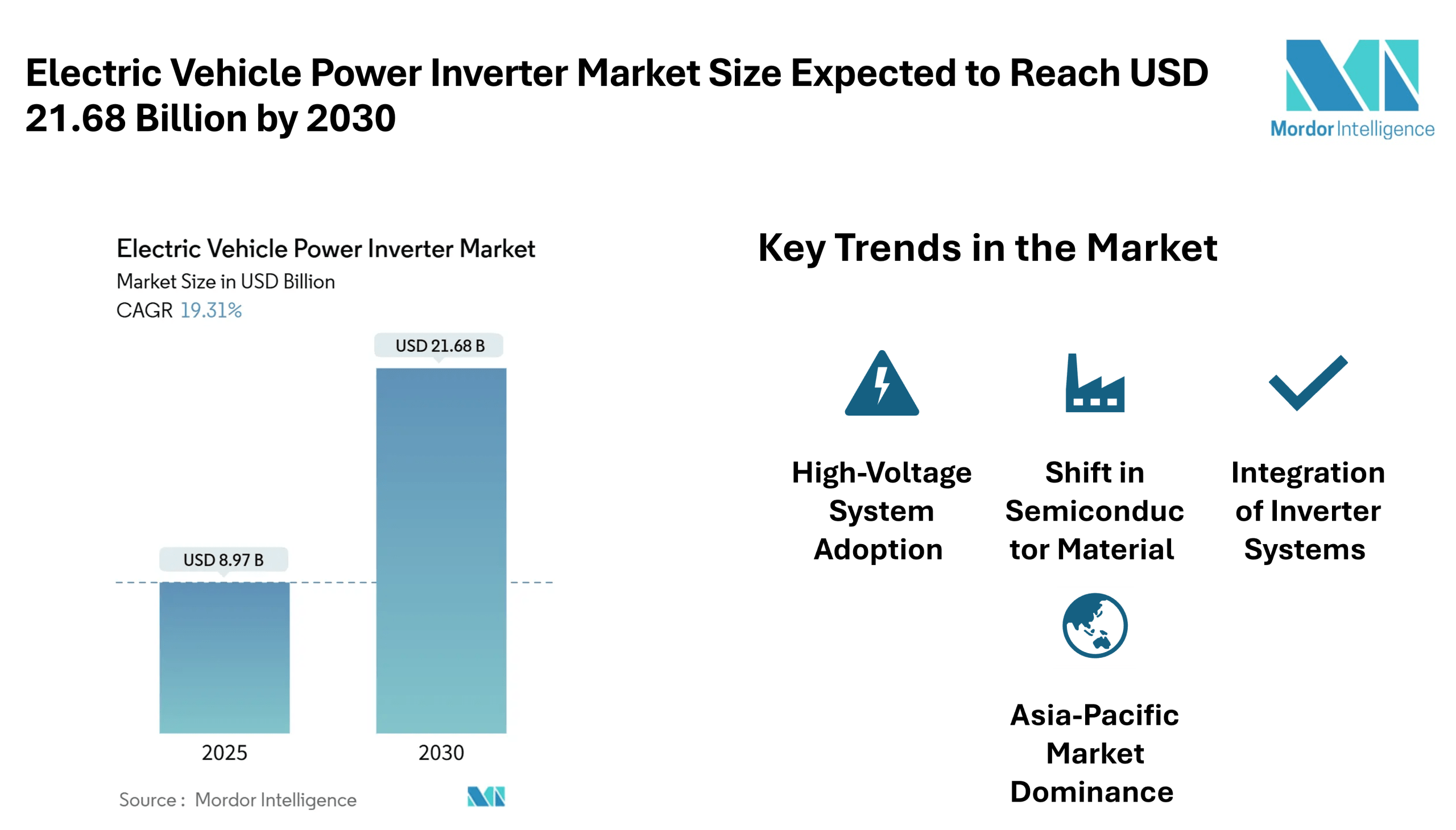 Home Press ReleasesElectric Vehicle Power Inverter Market Size Expected to Reach USD 21.68 Billion by 2030, Driven by Rising Electrification and Semiconductor Advances – Mordor Intelligence
