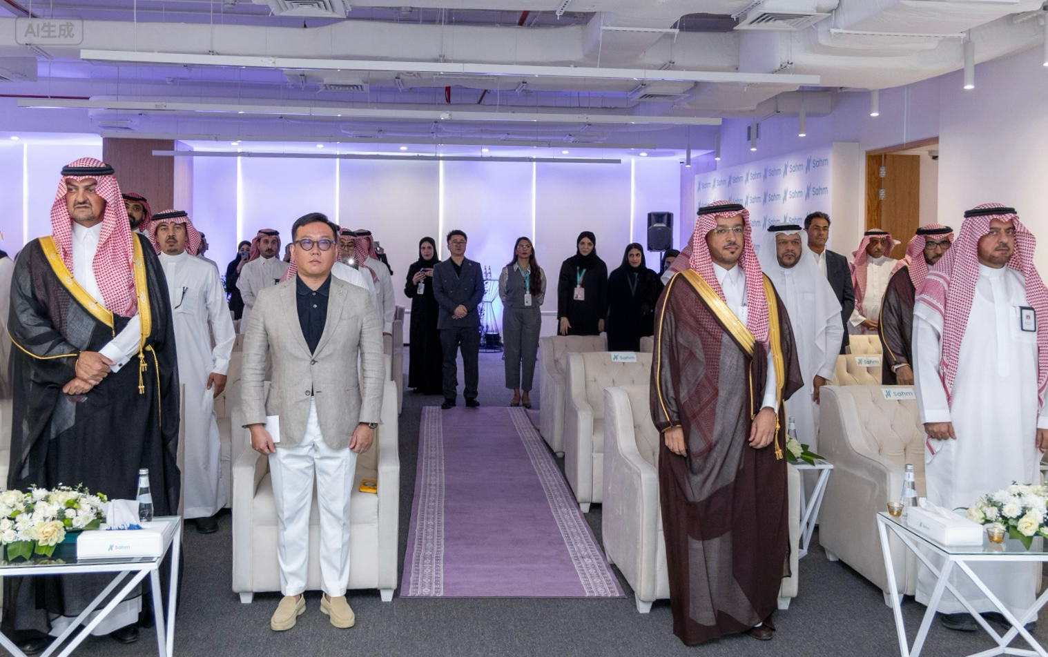Photo Capition: First row, from left: His Royal Highness Prince Khalid bin Saud Al-Faisal; Mr. Steven Chou, Chairman of Sahm Capital; and Dr. Saad Al-Harbi Deputy Minister of Education for Student Capabilities Development, during the Saudi National Anthem.